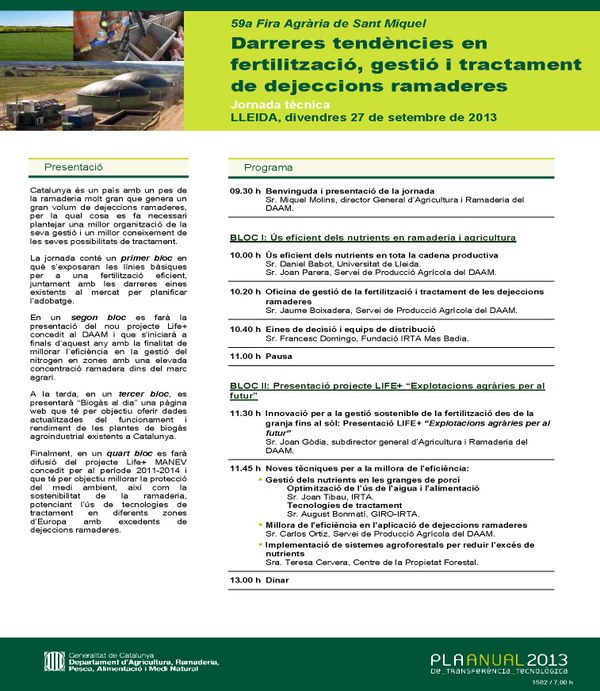 27 de setembre de 2013 - Jornada tècnica "Darreres tendències en fertilització, gestió i tractament de dejeccions ramaderes"