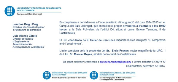 3 d'octubre de 2014 - Inauguració de Curs 2014-15 CBL